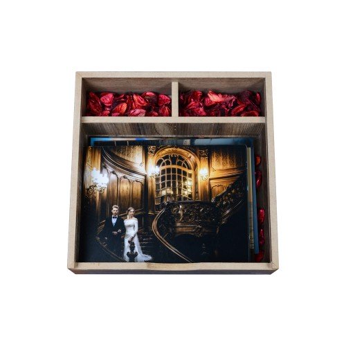 Ahşap Kapak Mutlu Kutu ( 20 Fotoğraflı ipek baskı )